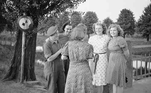 http://commons.wikimedia.org/wiki/File:British_soldiers_chatting_to_German_girls,_16_July_1945._BU8902.jpg
