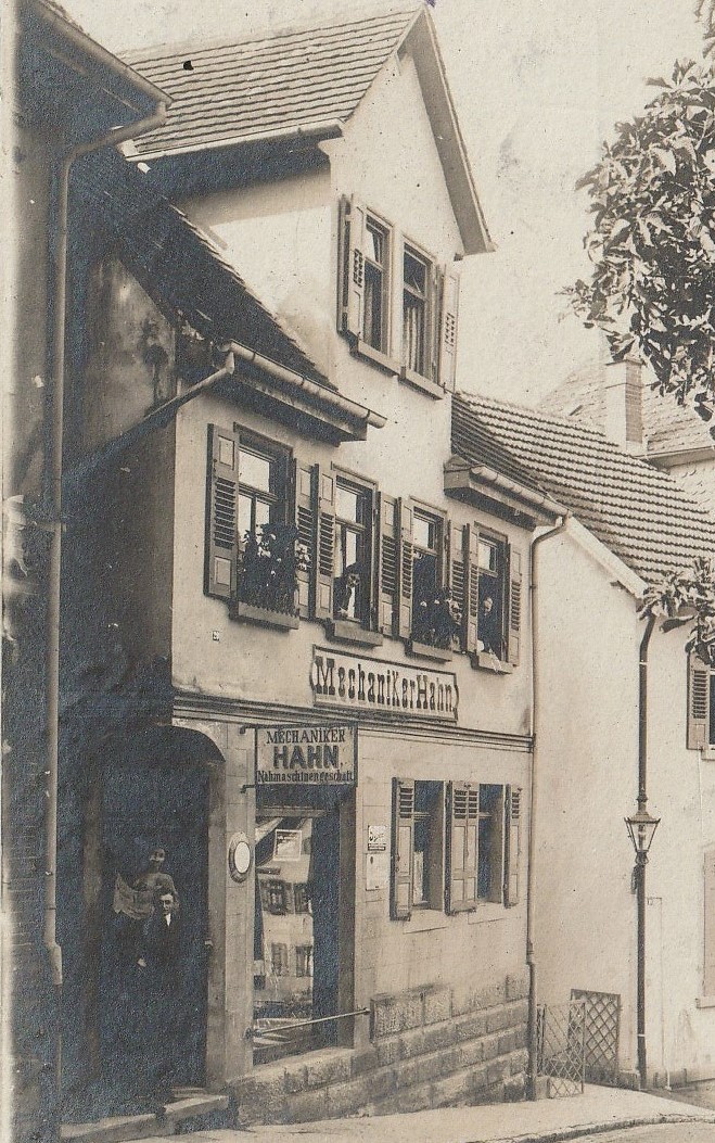 B 6 Mechanikergeschäft Hahn/Backnang, Postkarte von 1909/10 © Stadtarchiv Backnang (Jahrbuch Backnang 2020, H.-J. Gerste), Hinweis D. Waack/ P. Wolf Backnang