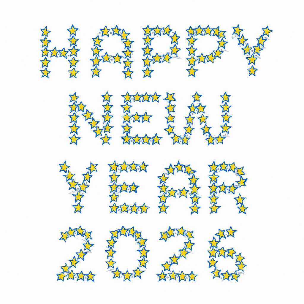 HAPPY NEW YEAR 2025 mit dem Stern-Zeichen dargestellt.