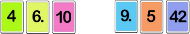 Man sieht die sortierten Karten von Marco auf der linken Seite. Er hat die Zahl 4610 gelegt. Auf der rechten Seite ist die Zahl von Petra. Sie hat 9542 gelegt.