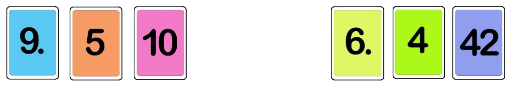 Man sieht die Karten 9, 5 und 10 auf der linken Seite. Rechts sieht man die übrigen Karten: 6, 4 und 42.