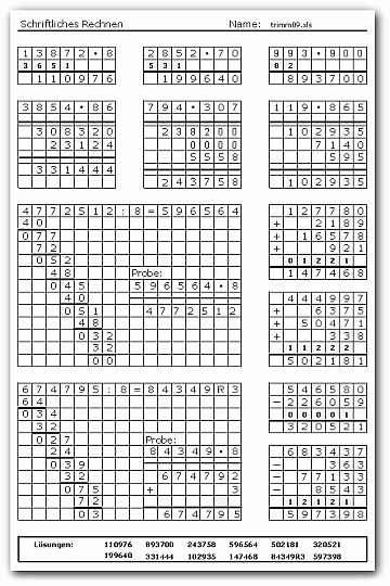 Schriftliches Rechnen bis 1 Million