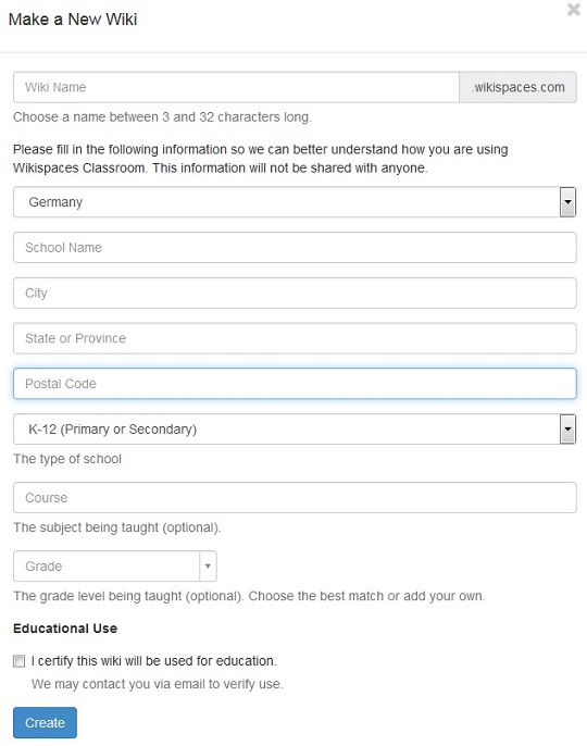 Anlegen eines neuen Wikis Screenshot des Dialogs zum Anlegen eines neuen Wikis Zeige Bild in voller Größe…