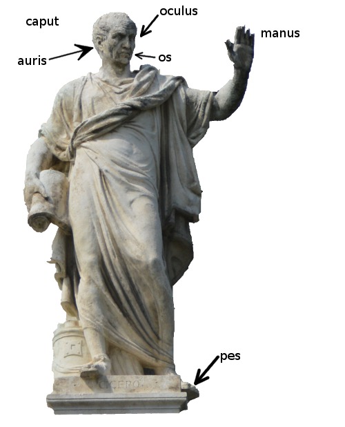 Vokabeln zum Sachfeld Körper - Schaubild - unter Verwendung einer Statue Ciceros am Parlamentsgebäude in Wien