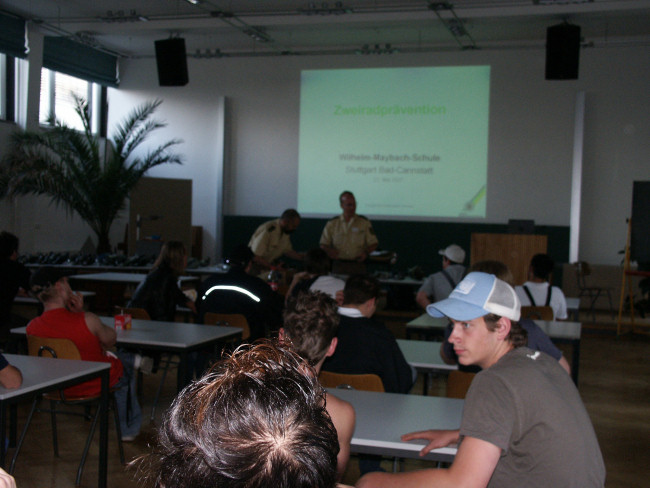 Ingolf Derer, im Kompetenzteam Motorrad erklärt den Schülern, welche Folgen auftreten, wenn man Motorroller tunt